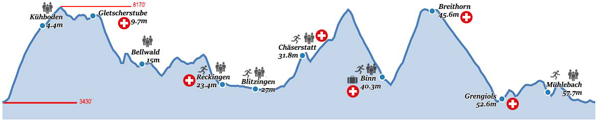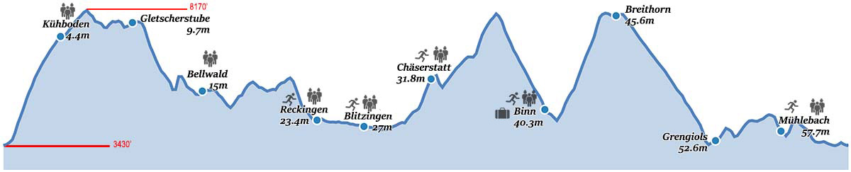| Finish Fiesch | 0.0 mi | 62.6 mi | Sam 20:30 |