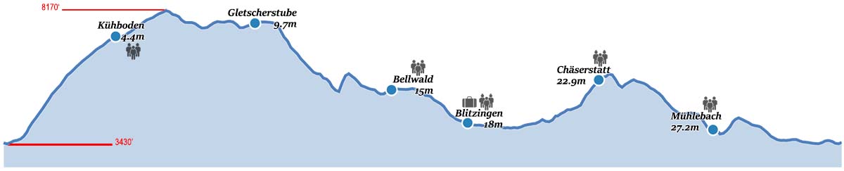 | Gletscherstube | 5.3 mi | 9.7 mi | Sat 11:00 | |||